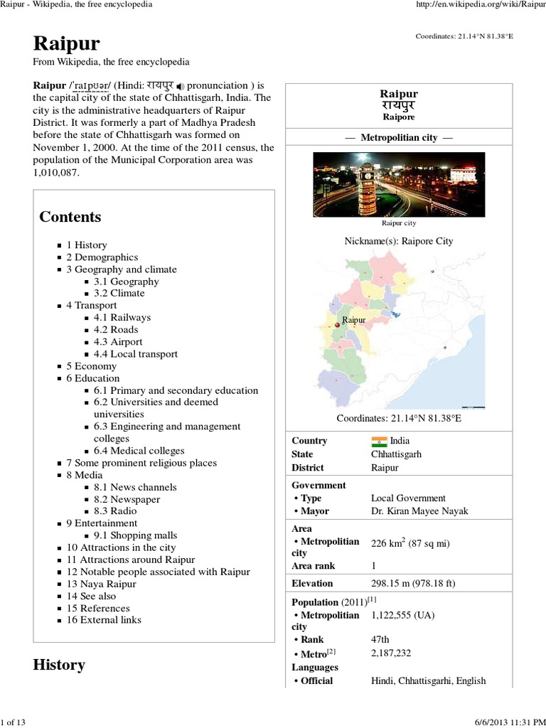 Raipur Wikipedia The Free Encyclopedia - Is it verb or noun or adverb?