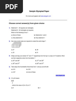 Maths Olympiad Books Free Download For Class 7 Laskoom - Solving ieo class 6 sample papers or previous year papers will give you an idea about.