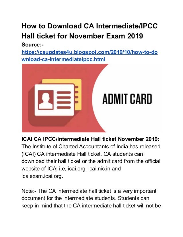 How To Download Ca Intermediate Ipcc Admit Card November 2019 By Ranjeet Rao Medium - Icai will not be sent admit cards by post.