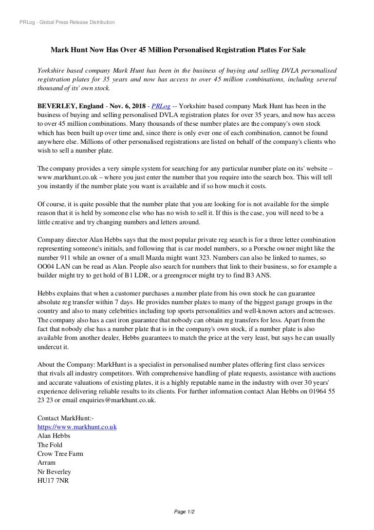 Mark Hunt Now Has Over 45 Million Personalised Registration Plates Fo - Whether it's a registration for a name, business or car model you're looking for we guarantee you'll find one that suits you.